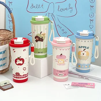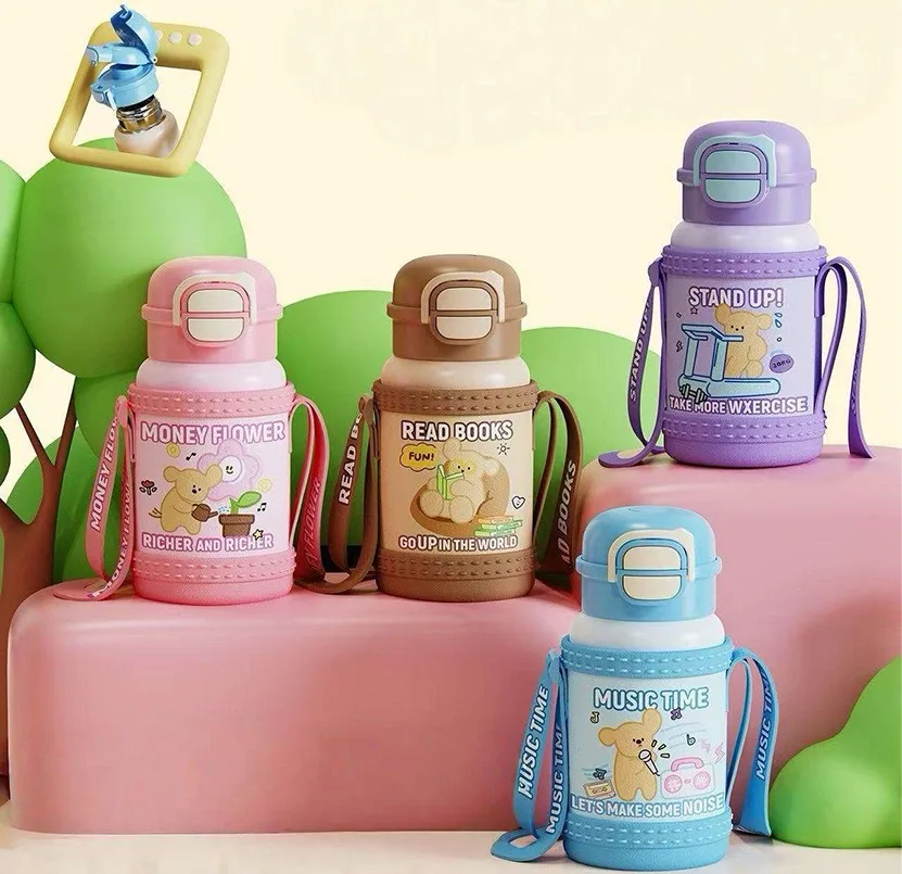Leak Proof 316 Stainless Steel Kids Insulated Water Bottle Cute Thermos Cup With Straw for Children