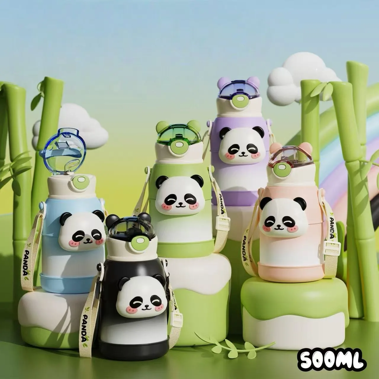 Durable 316 Stainless Steel Chinese Panda Kids Water Bottle Vacuum Insulated Thermos With Straw for Outdoor and Daily Use